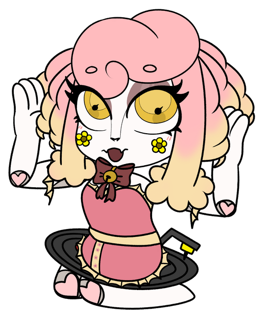 Dollie Dial began her existence as a modest, well-worn phonograph that resided in the Dreemurr household. Crafted from aged wood and faded brass, she carried the marks of a machine used often and lovingly. Toriel would play records on her during quiet evenings, while baking, or when gently rocking a young Asriel to sleep. These early days were warm, domestic, and unassuming, but left a lasting imprint on her identity.Even then, Dollie was alive in the way all Darkners are—her consciousness shaped by memory, use, and presence. She was not glamorous, not flashy, but she was steady. Comfortable. Familiar.